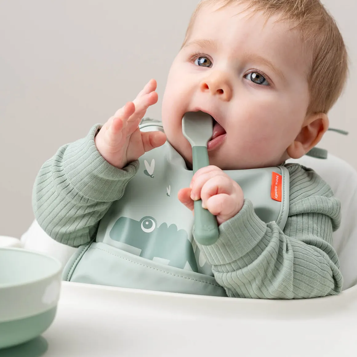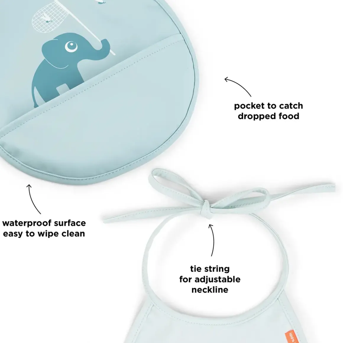 Med en vandtæt overflade giver de fremragende beskyttelse af dit barns tøj og er nemme at tørre af efter måltiderne. Den indbyggede lomme er perfekt til at opsamle mad, der tabes, og hjælper med at minimere rodet ved måltiderne. Den praktiske snorelukning sikrer nem og justerbar påklædning for dit barn. Gør måltiderne sjovere med disse søde og praktiske hagesmække.