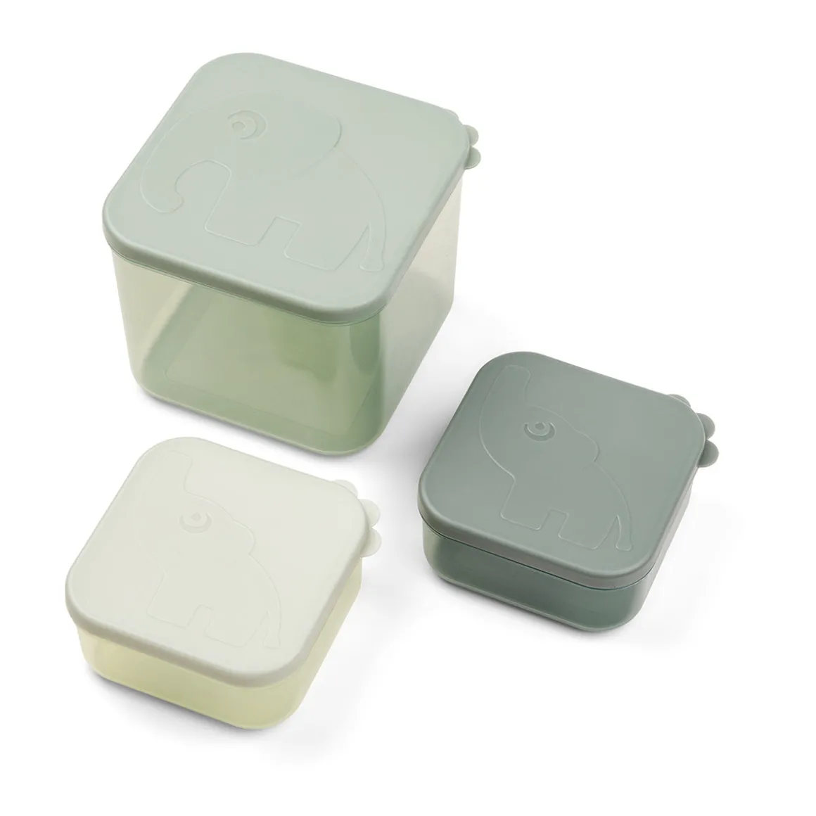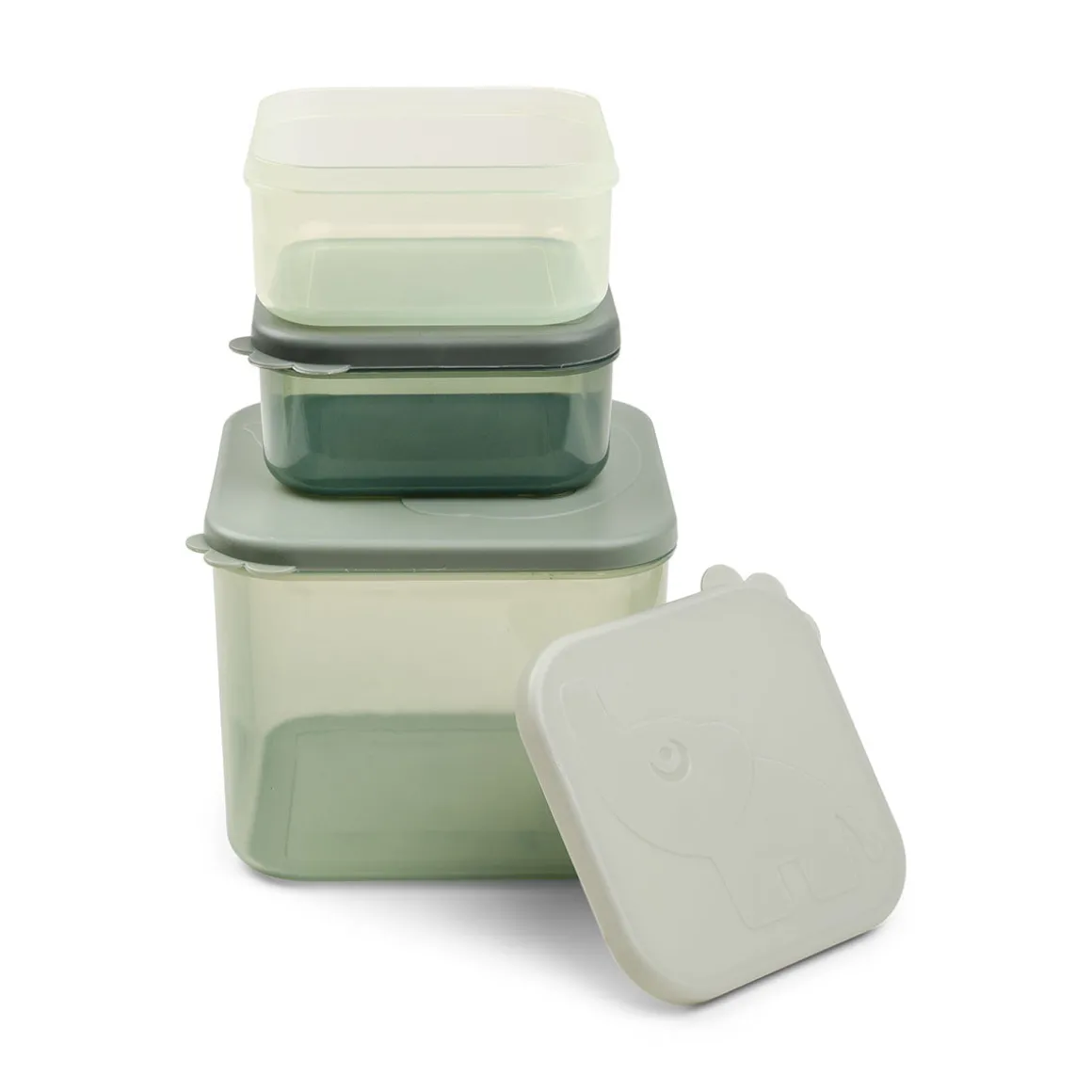 Pak familiens favoritter i disse seje, gennemsigtige beholdere til madopbevaring i grønne nuancer. Lågene har søde Croco-klumper for nem åbning, og de er præget med motiver af Elphee.