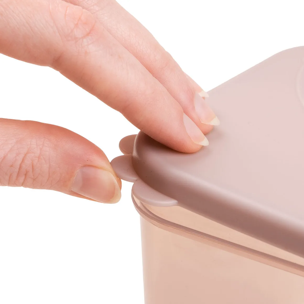 Brug disse praktiske beholdere til madopbevaring til at holde orden i køkkenskuffen eller tag dem med som en god ledsager til frokosten. Det søde sæt består af tre beholdere i to forskellige størrelser. Perfekt til at gemme og medbringe favoritter.