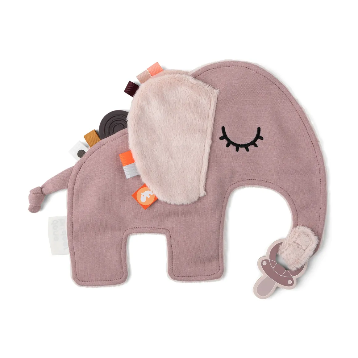 Den søde elefant holder sutterne i nærheden, når det er sengetid, eller når man er out & about. Den praktiske velcrolukning og den elastiske løkke gør det muligt at fastgøre både sutter med og uden håndtag.