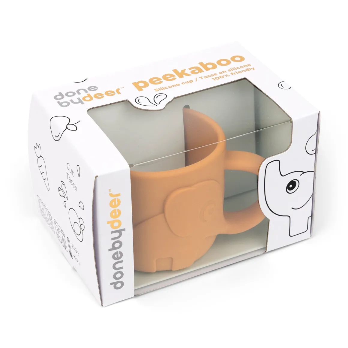 Lad Elphee vise vejen og opmuntre barnets spisere til at drikke op. Den varme sennepsfarvede børnekop matcher de andre ting i Peekaboo-serviset. Den er pakket i en sødt dekoreret gaveæske – en god gaveidé til et barn.