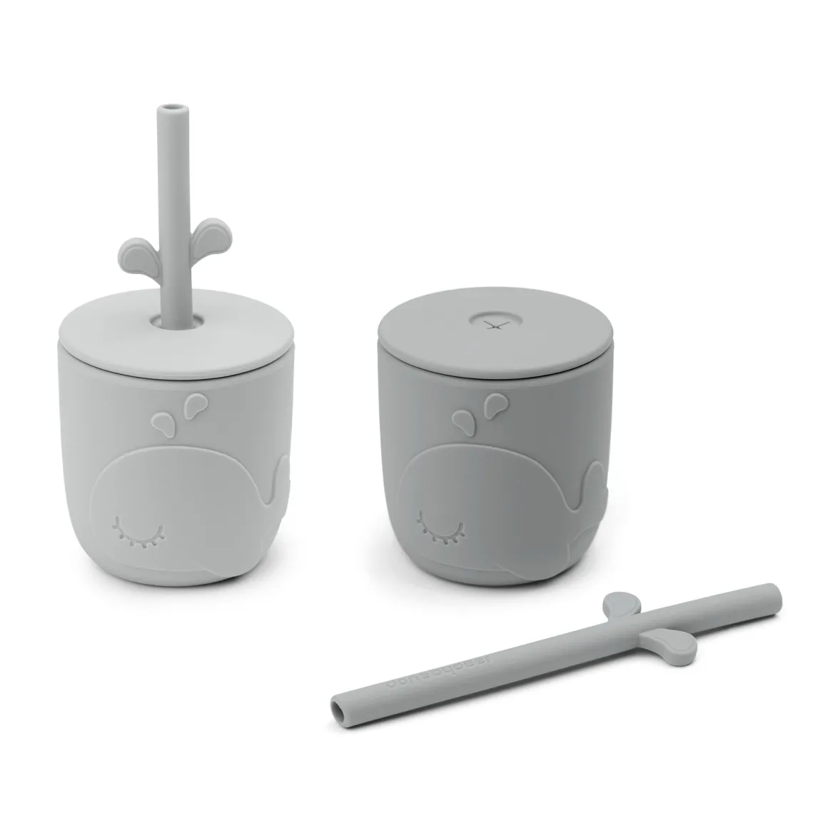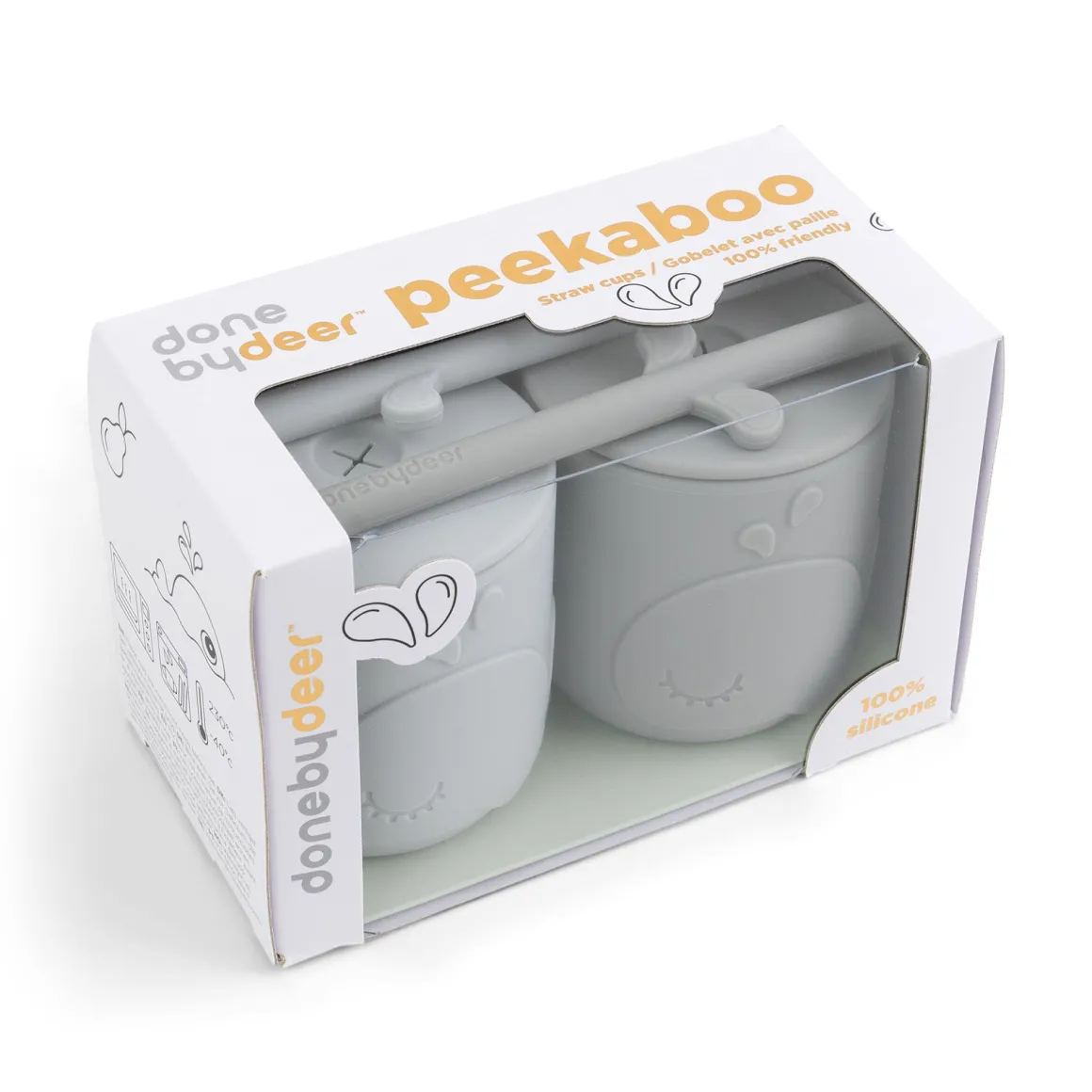 Kopperne med sugerør i 2-pak er i to nuancer af grå. De søde sugerør passer perfekt i alle små børns kopper uden at vippe, og lågene kan bruges til de Peekaboo tudkop. også.
