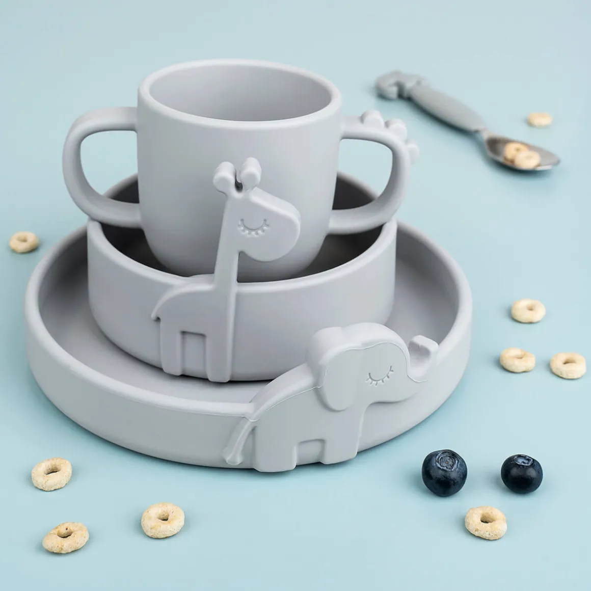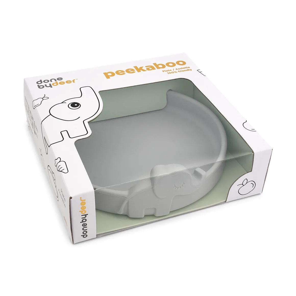 Børnene vil nyde at have den søde elefant med til måltidet – og pas på, Elphees lange snabel stjæler måske en bid. Den praktiske tallerken er i en blød grå farve, der matcher Peekaboo-serviset, og leveres i en flot dekoreret gaveæske.