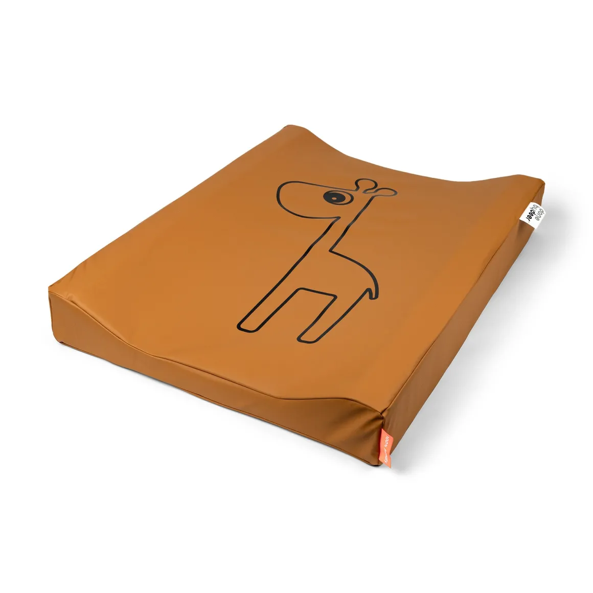 En funktionel og sød puslehynde i Mustard med et sødt girafprint, som holder din baby med selskab ved pusletid.