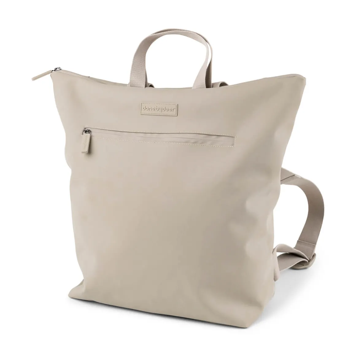 Et praktisk foldbart pusleunderlag med vandafvisende overflade og to barnevognskroge medfølger. Både de vandtætte lynlåse og den vandafvisende overflade gør rygsækken klar til hverdagens slid. Tag på eventyr med stil med denne unisex-rygsæk i en dejlig sandfarve.