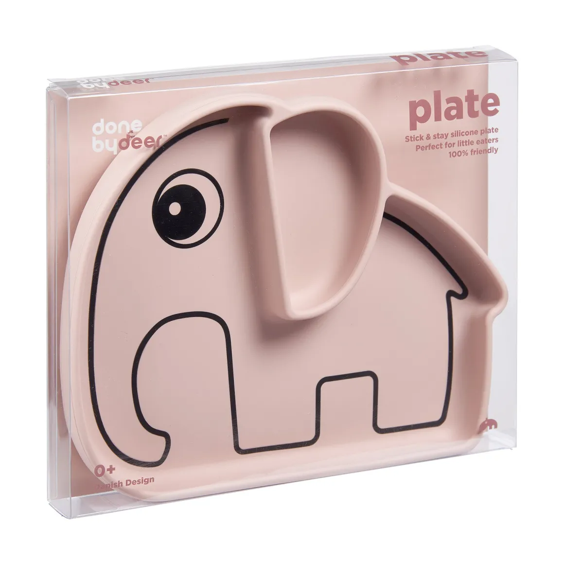 Elphee er klar til at gøre det sjovt at spise! Pudder stick&stay-tallerkenen med to praktiske rum bliver på plads og hjælper små spisere med at mestre deres spisefærdigheder.