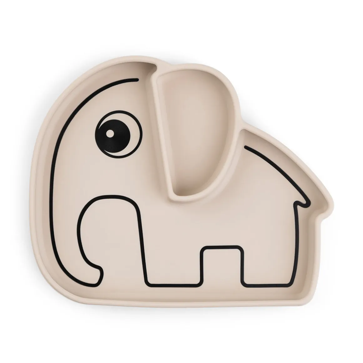 Vores bløde Silicone Stick&Stay tallerken – Elphee – Sand er fremstillet af 100 % fødevaregodkendt, BPA-fri silikone, hvilket gør den til en sikker spiseoplevelse for børn. Sugebasen forhindrer børn i at skubbe, tippe eller kaste med tallerkenen. Bag Elphees øre gemmer sig en flap, der er nem at løsne.