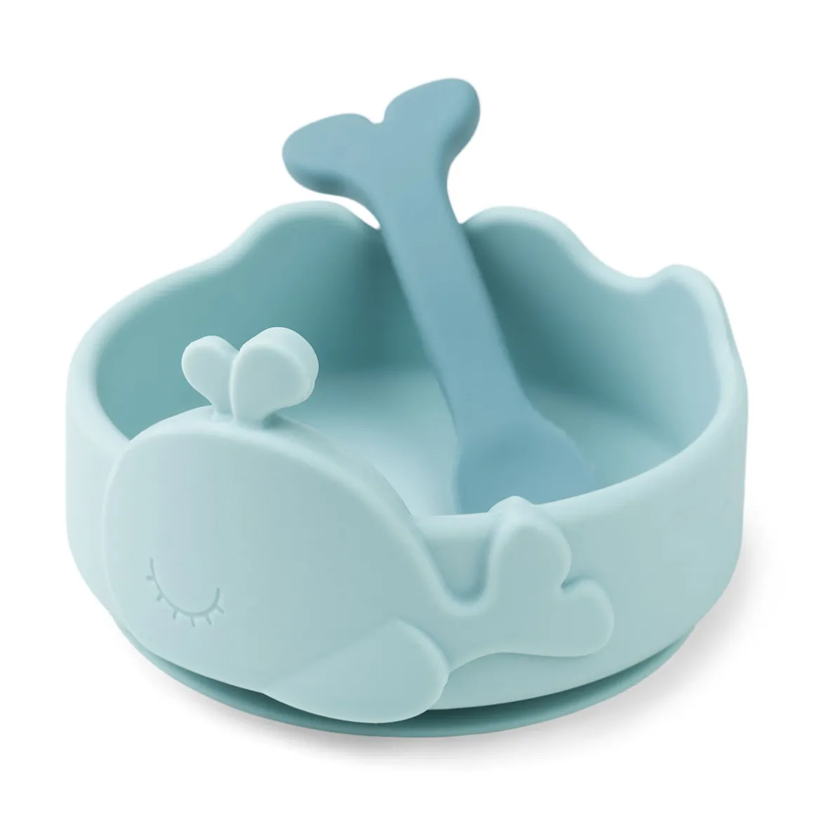 Silikone Stick&stay skålen og skeen er designet til, at små spisere kan udforske madens verden. Wally tager en svømmetur rundt om skålen, og halen på skeen er klar til at underholde ved at dykke ned i maden. Sættet har en perfekt størrelse til nye spisere.