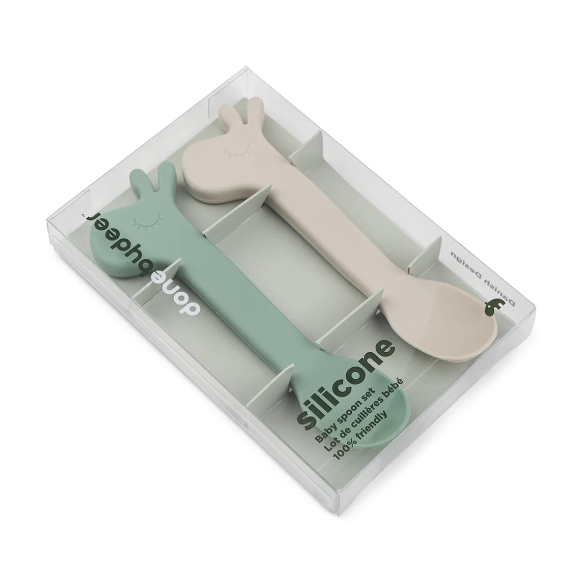 En praktisk 2-pak med skeer – en i grøn og en i sand. Perfekt til at spise alle favoritterne og prøve ny mad.