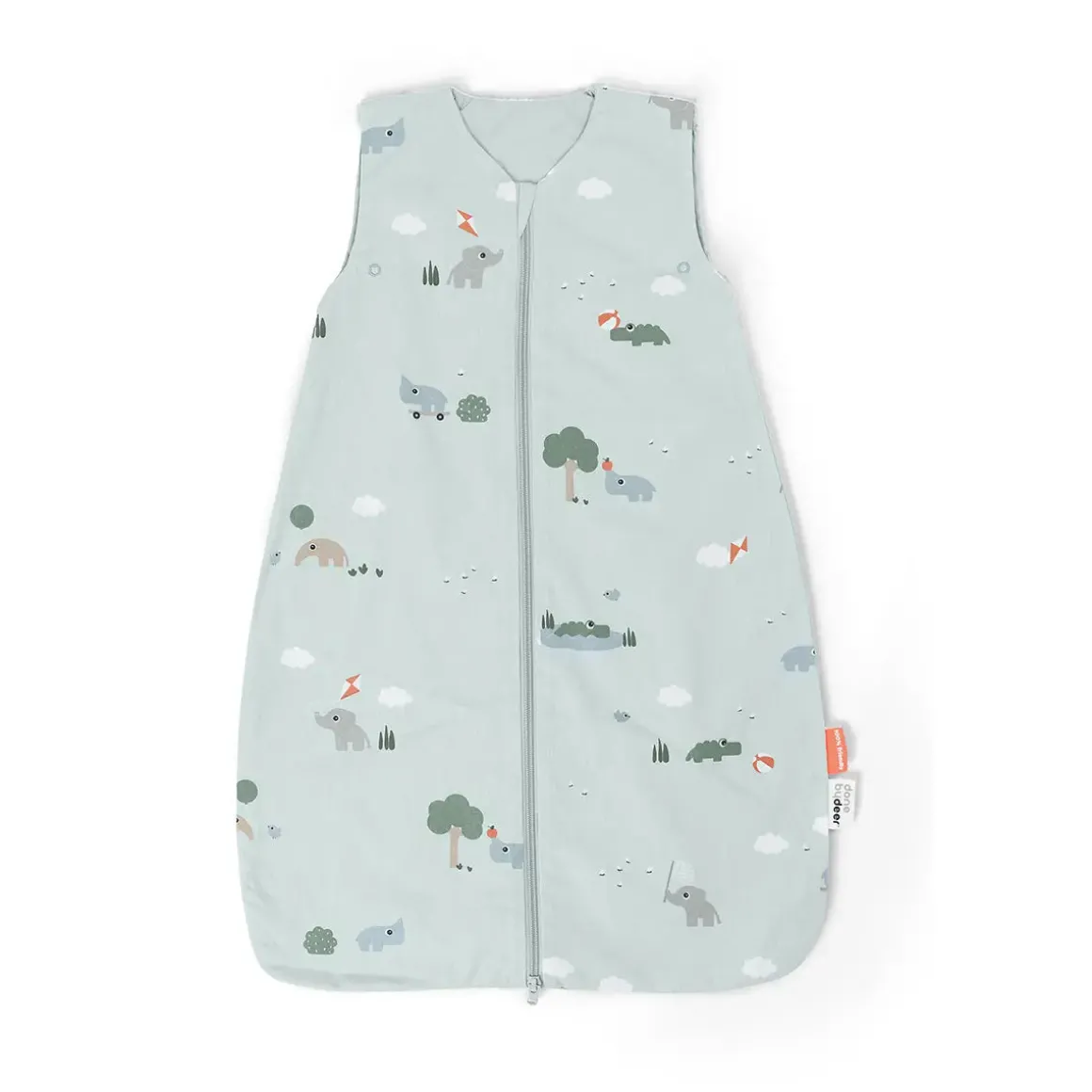 With a TOG value of 1.0, it’s perfect for warmer nights. The adjustable armholes ensure a customised fit, while the YKK safety zipper makes dressing and diaper changes easy. In a lovely blue colour with charming motifs of Antee, Croco, Elphee, and Nozo, this sleeping bag brings both comfort and sweetness to bedtime.