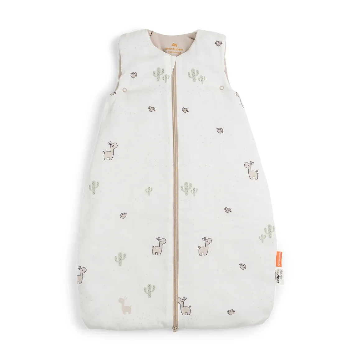 Kryb sammen med den søvnige Lalee, når det er tid til at sove. Den søde Sleepy-pose er i en lys sandfarve dekoreret med den søde lama, fugl og kriblende kaktusser i farverne sand og grøn. Kan vaskes ved 40 °C.