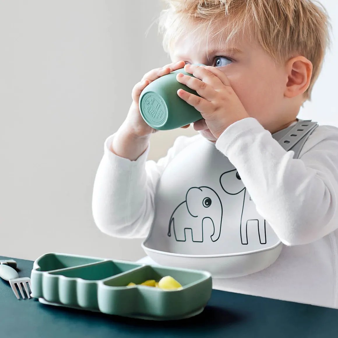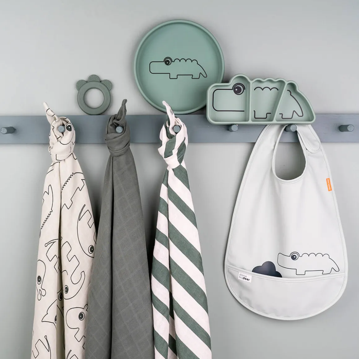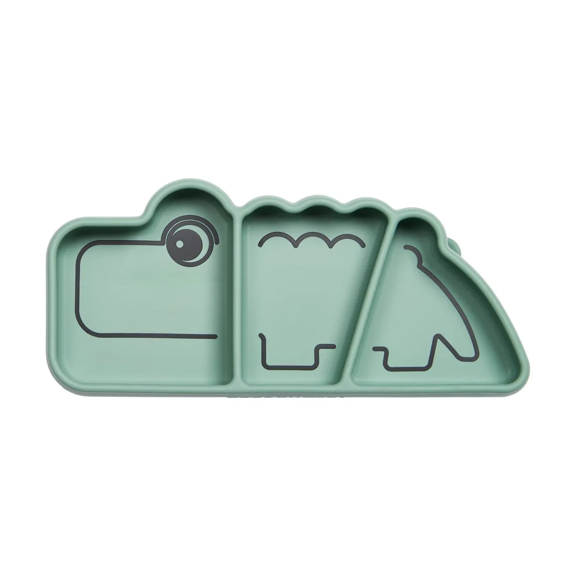 Krokodillens Stick&Stay inddelte tallerken med tre separate rum bliver på plads og hjælper de små med at spise. Croco er klar til at gøre mellemmåltiderne sjove!
