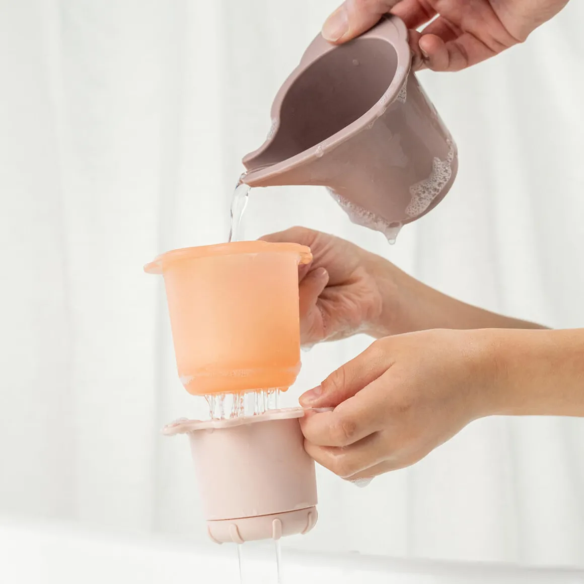 The set includes an Elphee-shaped cup, a cloud-shaped cup with holes in the bottom, and a sun-shaped cup that opens and closes, allowing your child to enjoy interactive water play. The soft powder-colored hues and cute shapes add to the visual appeal while encouraging imaginative play.