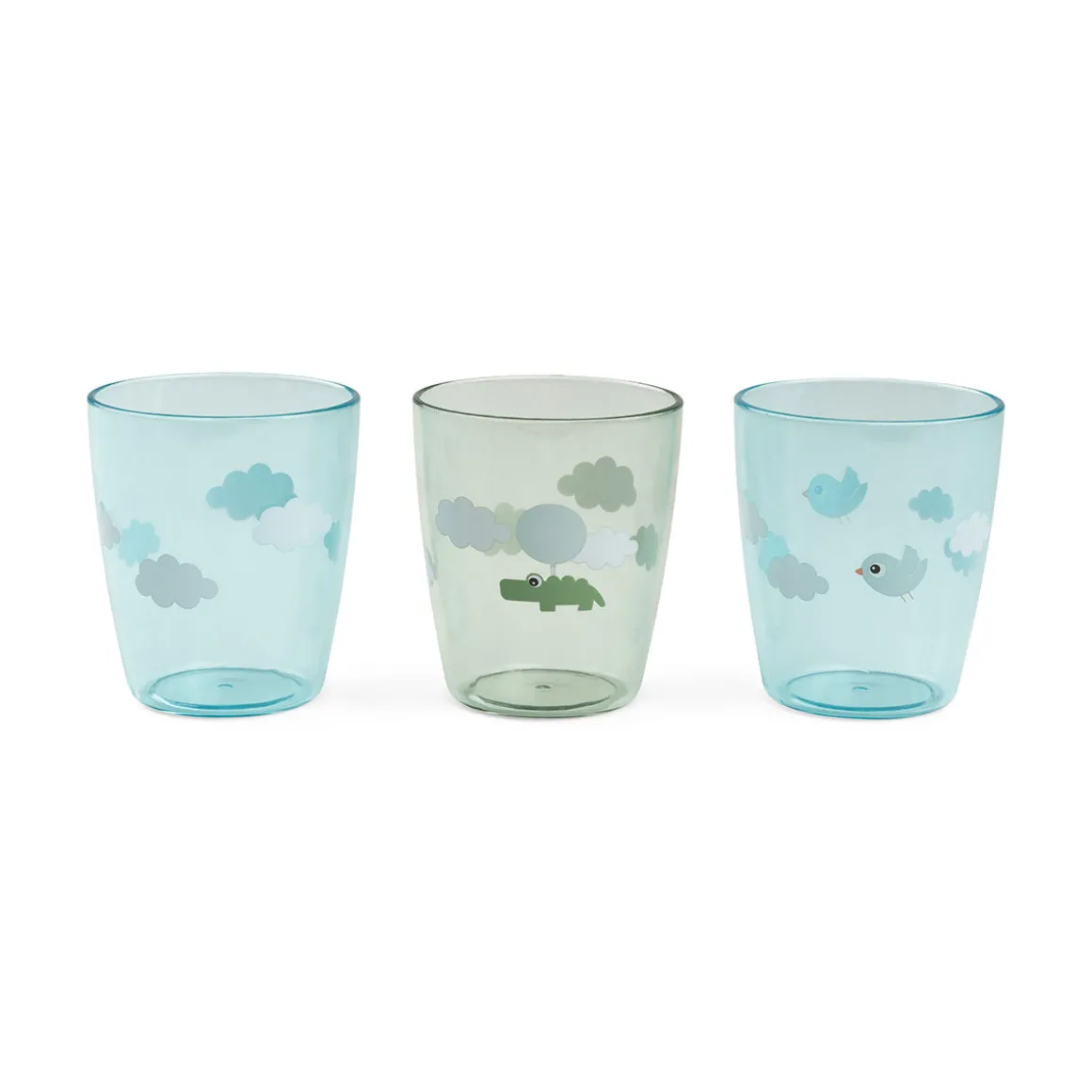 Yummy miniglasset er designet til, at små hænder kan holde det. Croco, Birdee og deres Happy Clouds vil hilse på dig hele vejen rundt om glasset. Når glasset fyldes op, vil børn have det sjovt med at se det regne fra skyerne.